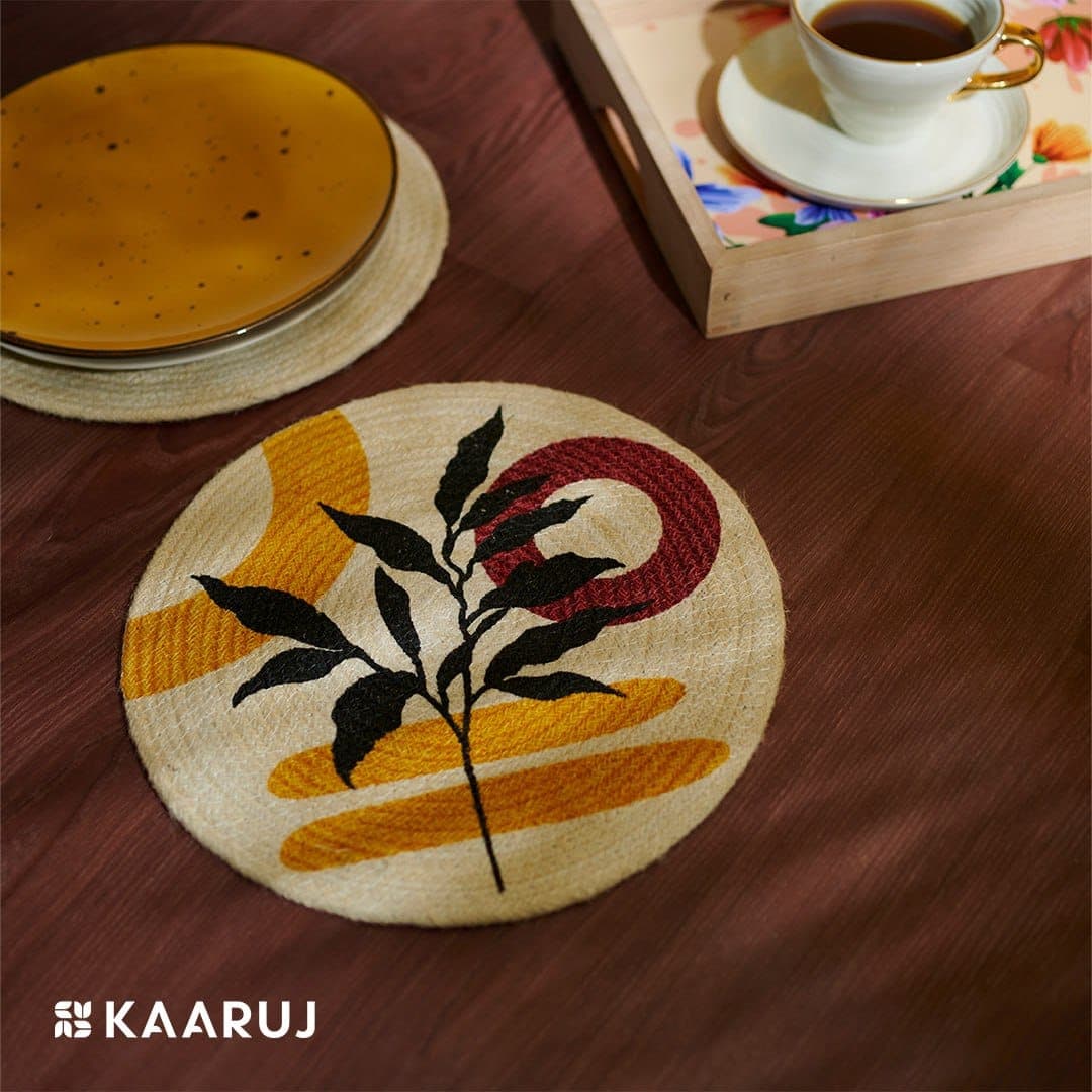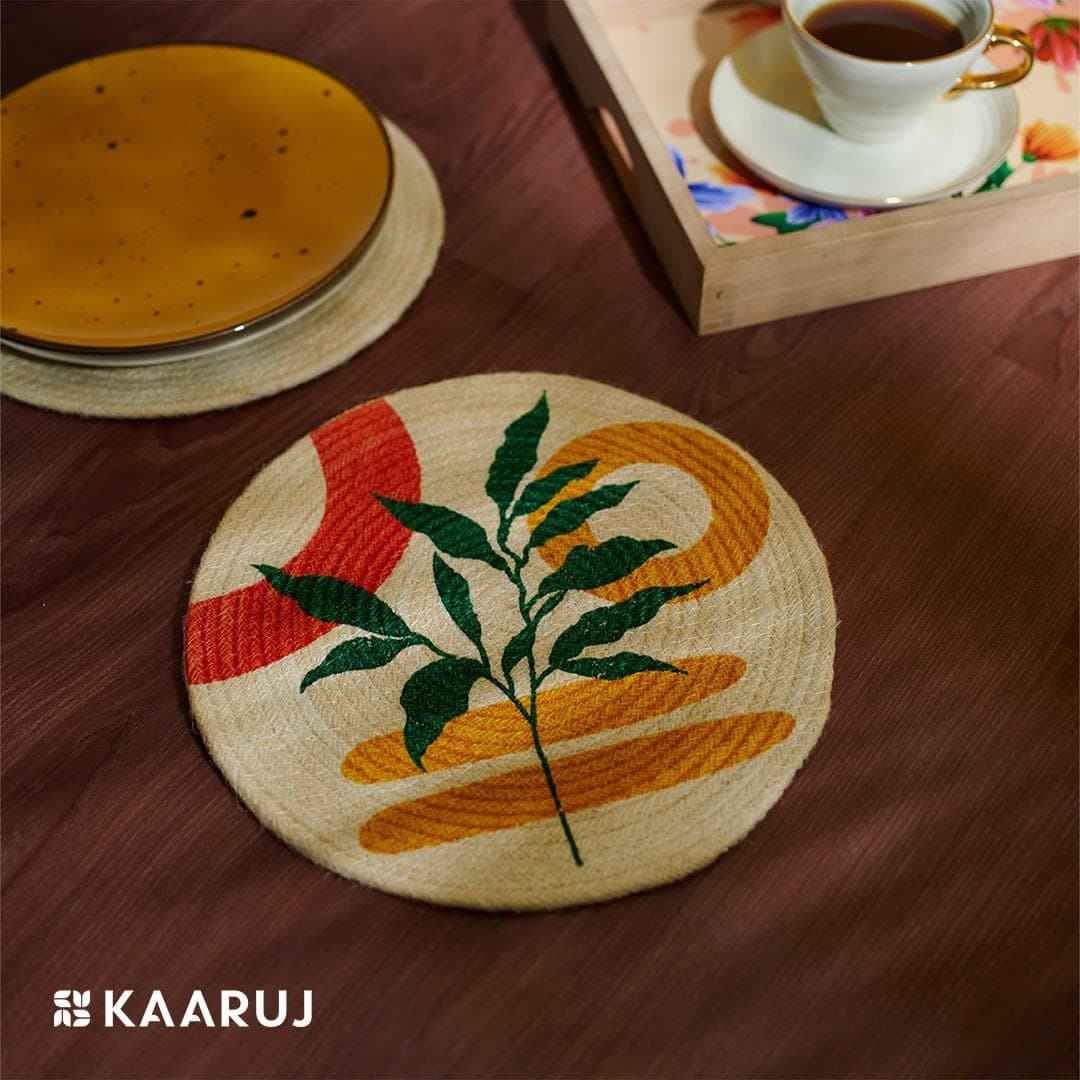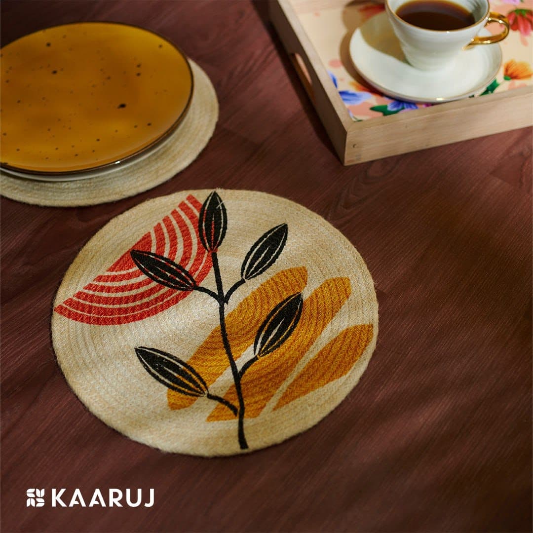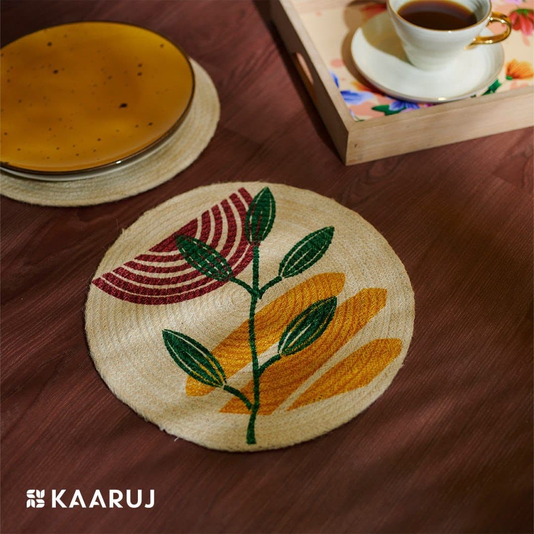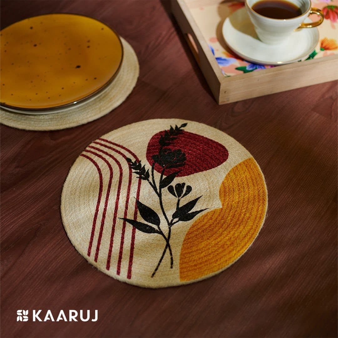 These round placemats are made of premium jute braid and printed with beautiful canvas art. They are the perfect way to add a touch of style and sophistication to your dining table. The 12" size is ideal for most round tables, and the placemats are machine washable for easy care.