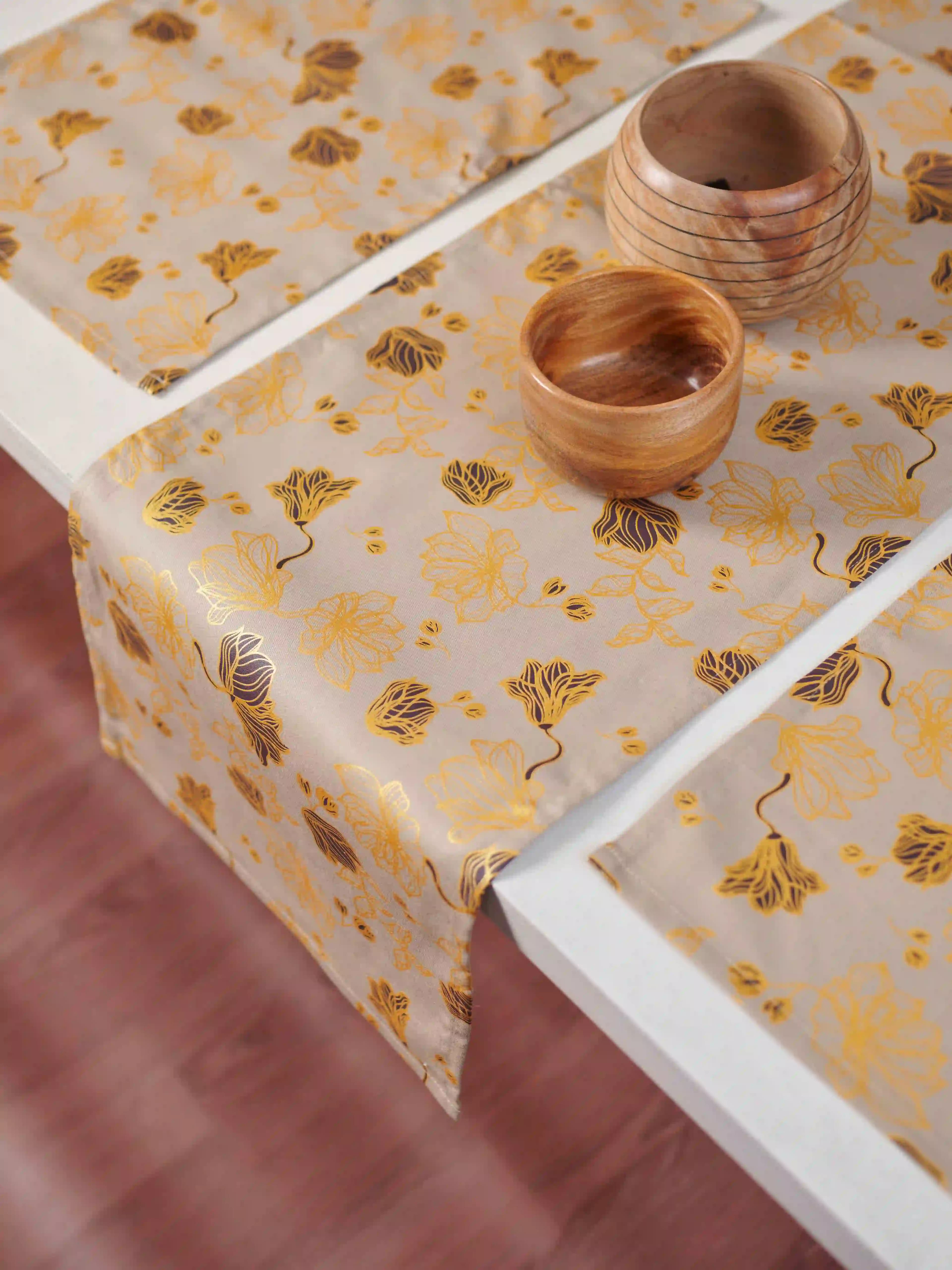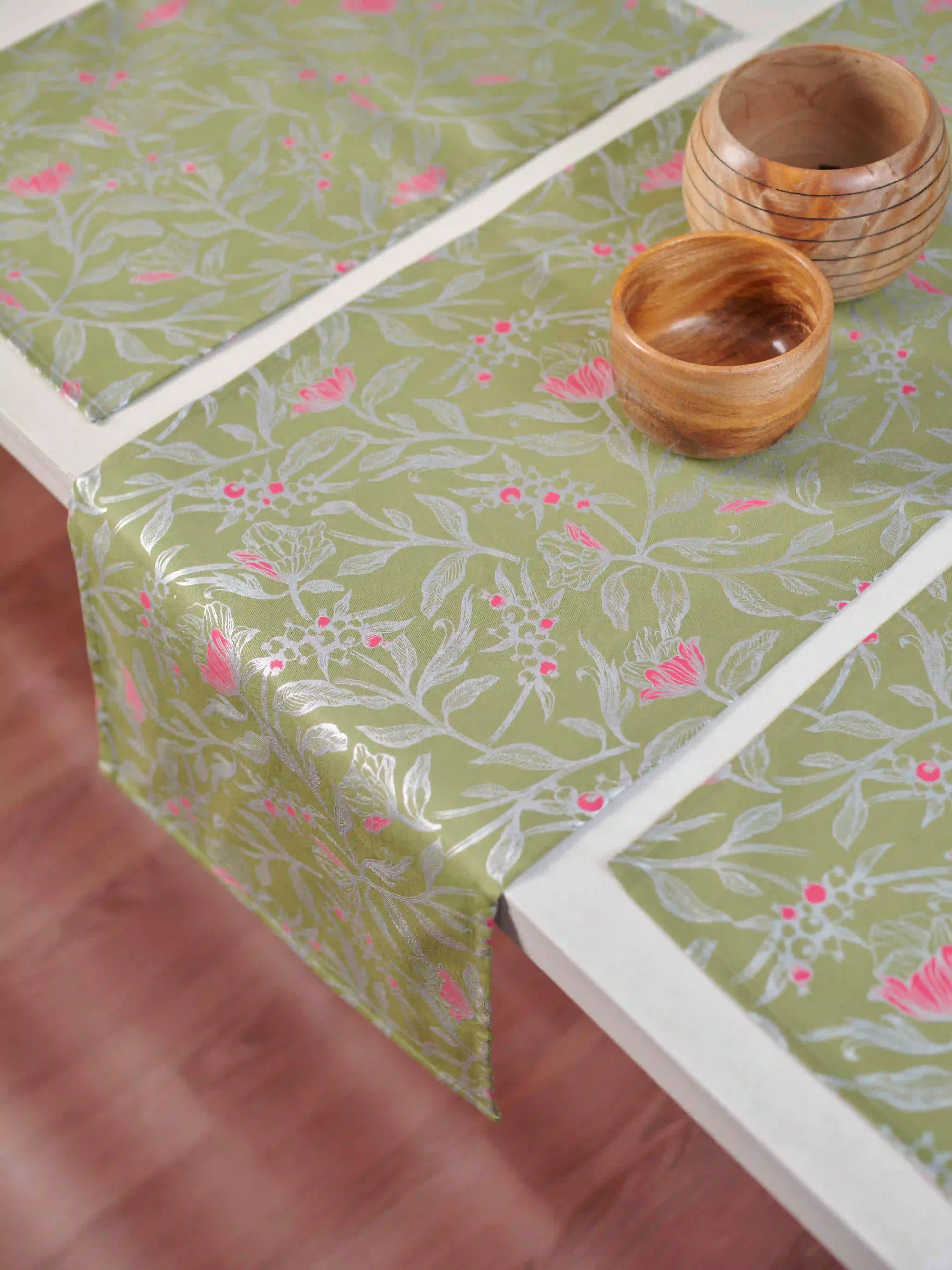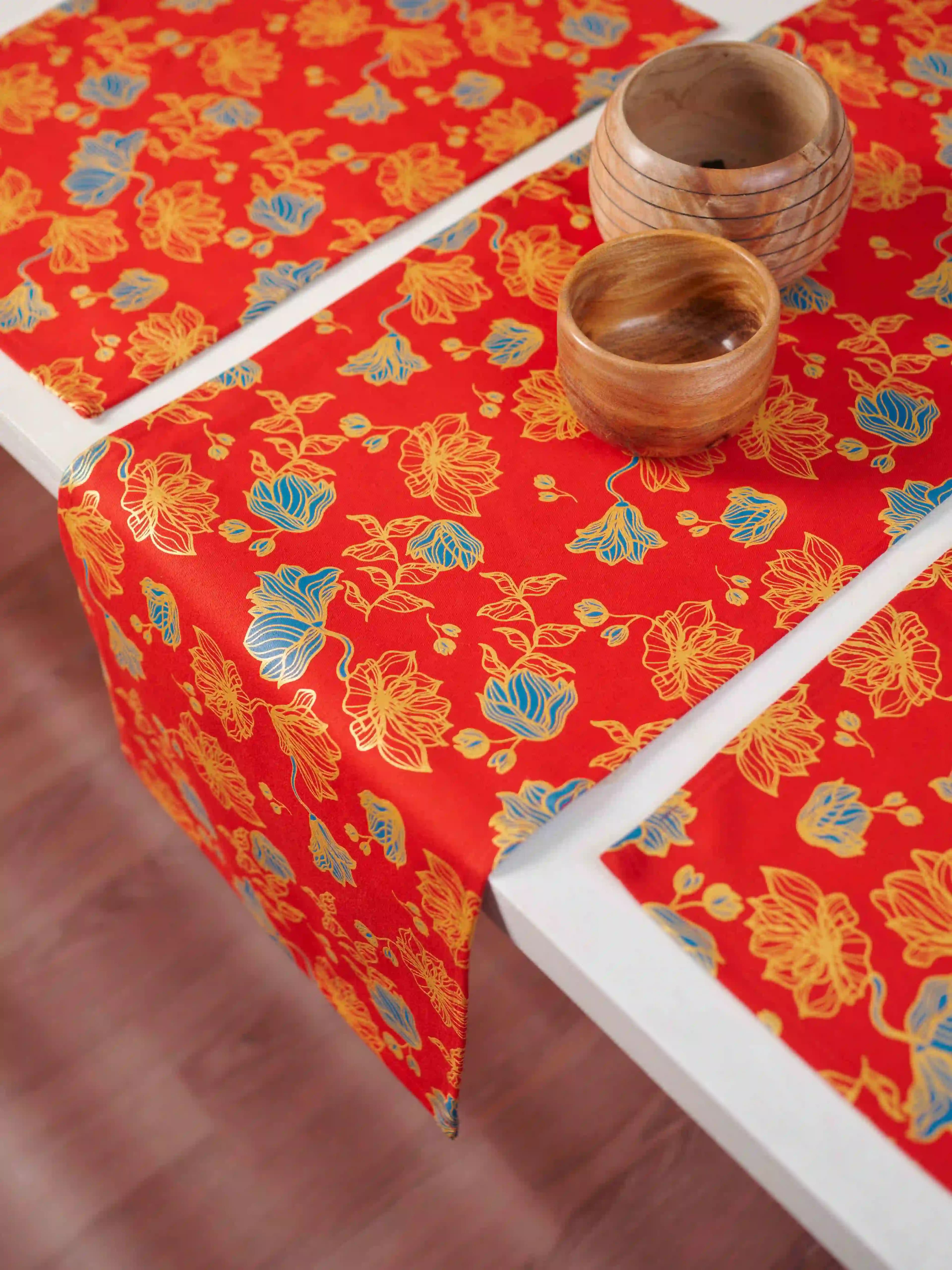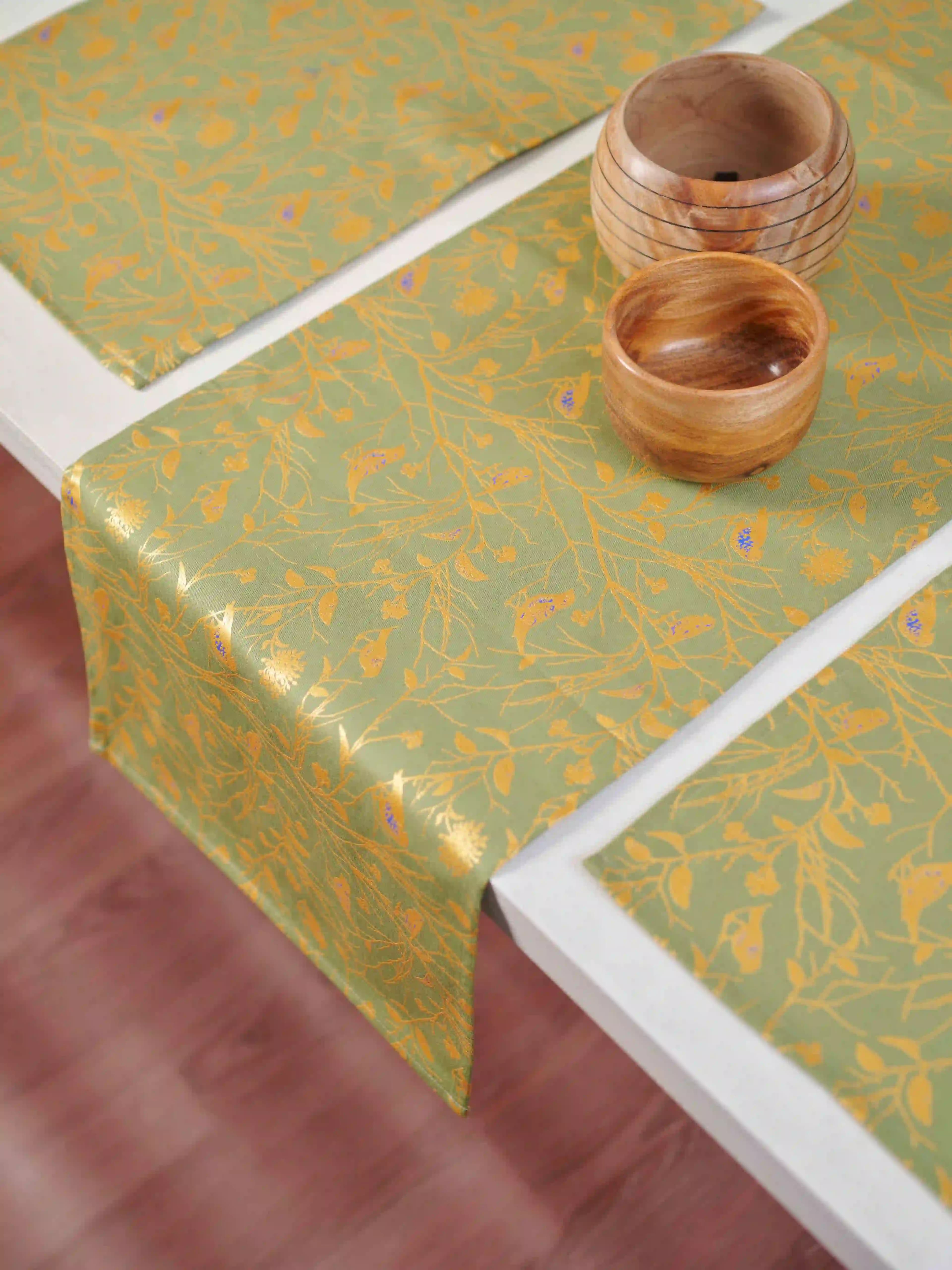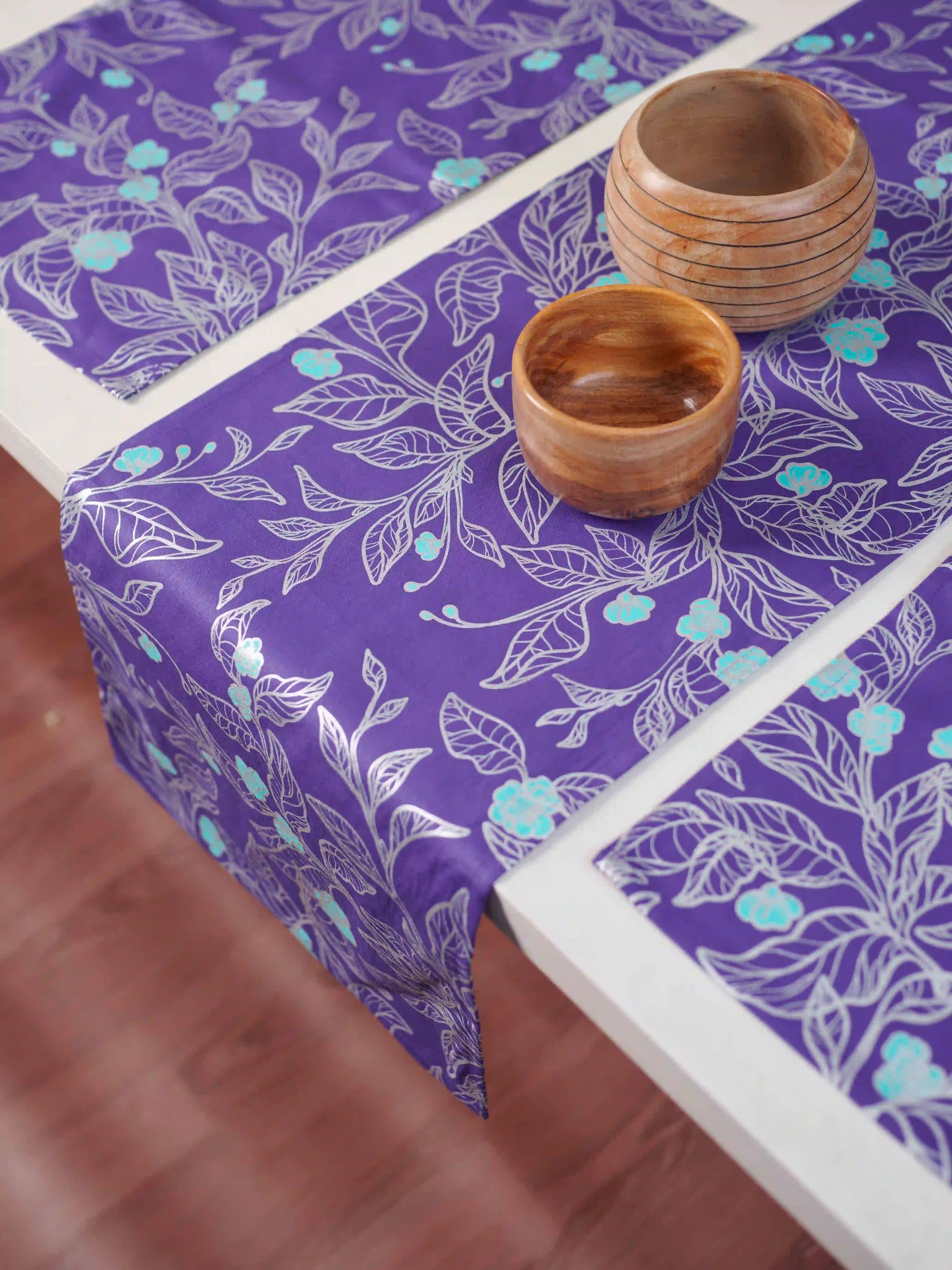 This beautiful Kaaruj Floral Table Runner and Placemat Set will add a touch of elegance to your dining table. The set includes a 60-inch long table runner and 6 placemats, all made from soft and durable twill cotton. The runner is available in a variety of colors, including purple, olive, black, blue, red, and olive base.