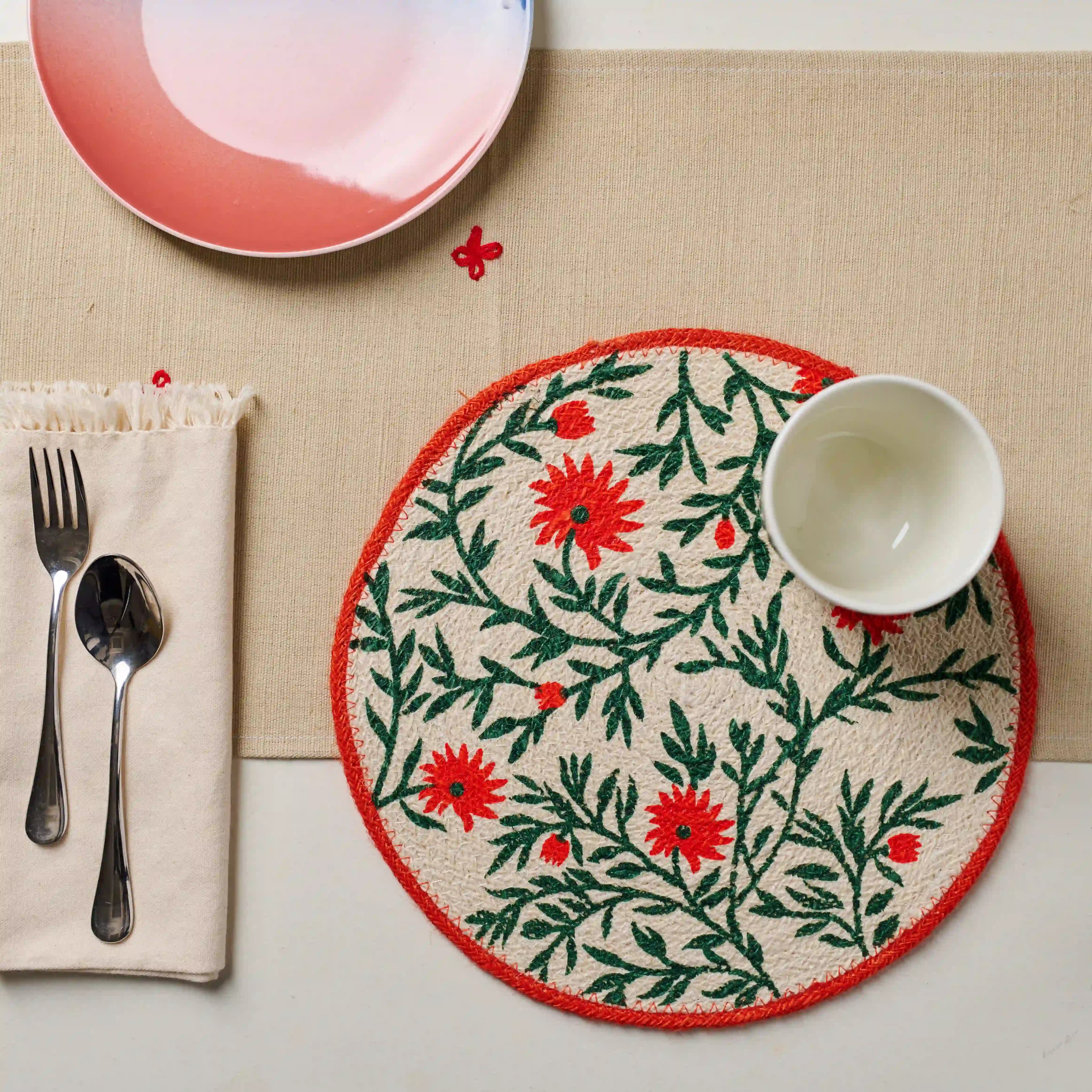 The placemats are made of a durable and sustainable material that is perfect for everyday use. They are also machine-washable, making them easy to care for. The floral print adds a touch of elegance to any table setting.